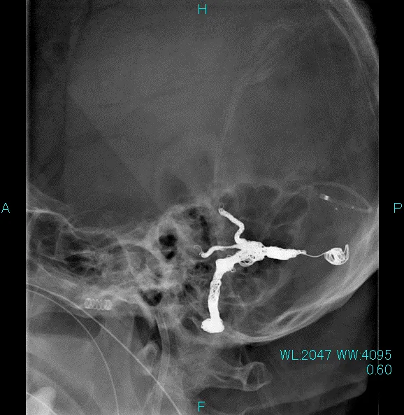 全身麻酔下にカテーテル治療(コイル塞栓術)を施行